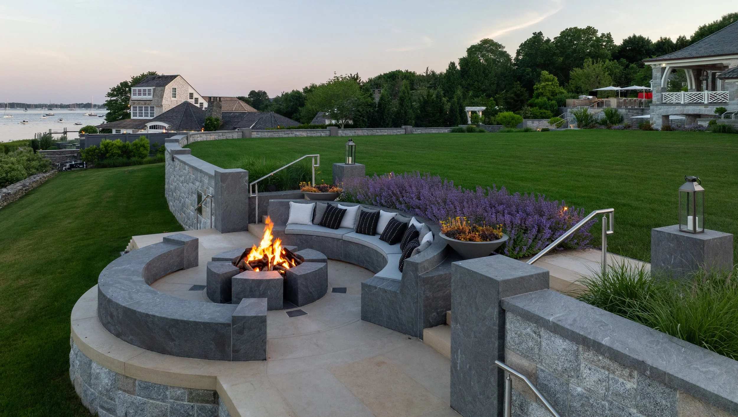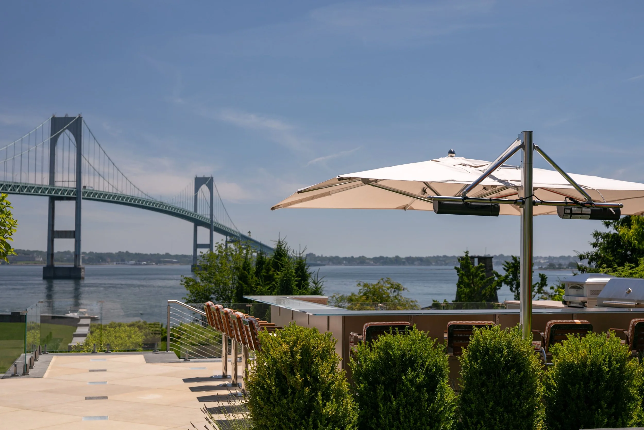 Bridge View blends well-appointed landscape design with the magnificent view of the adjacent bridge and bay. The project was conceived and constructed in phases, with the most recent work completed in the summer of 2024. The site is a family compound that consists of two connected properties with multiple areas of outdoor recreation including a tennis court, bocce court, pool, two spas, basketball court, pickleball court, golf course and outdoor firepit. Between the two sites the total project size is 5.6 acres. The project began with work on the original house and over the years as the family has expanded, so has the landscape.