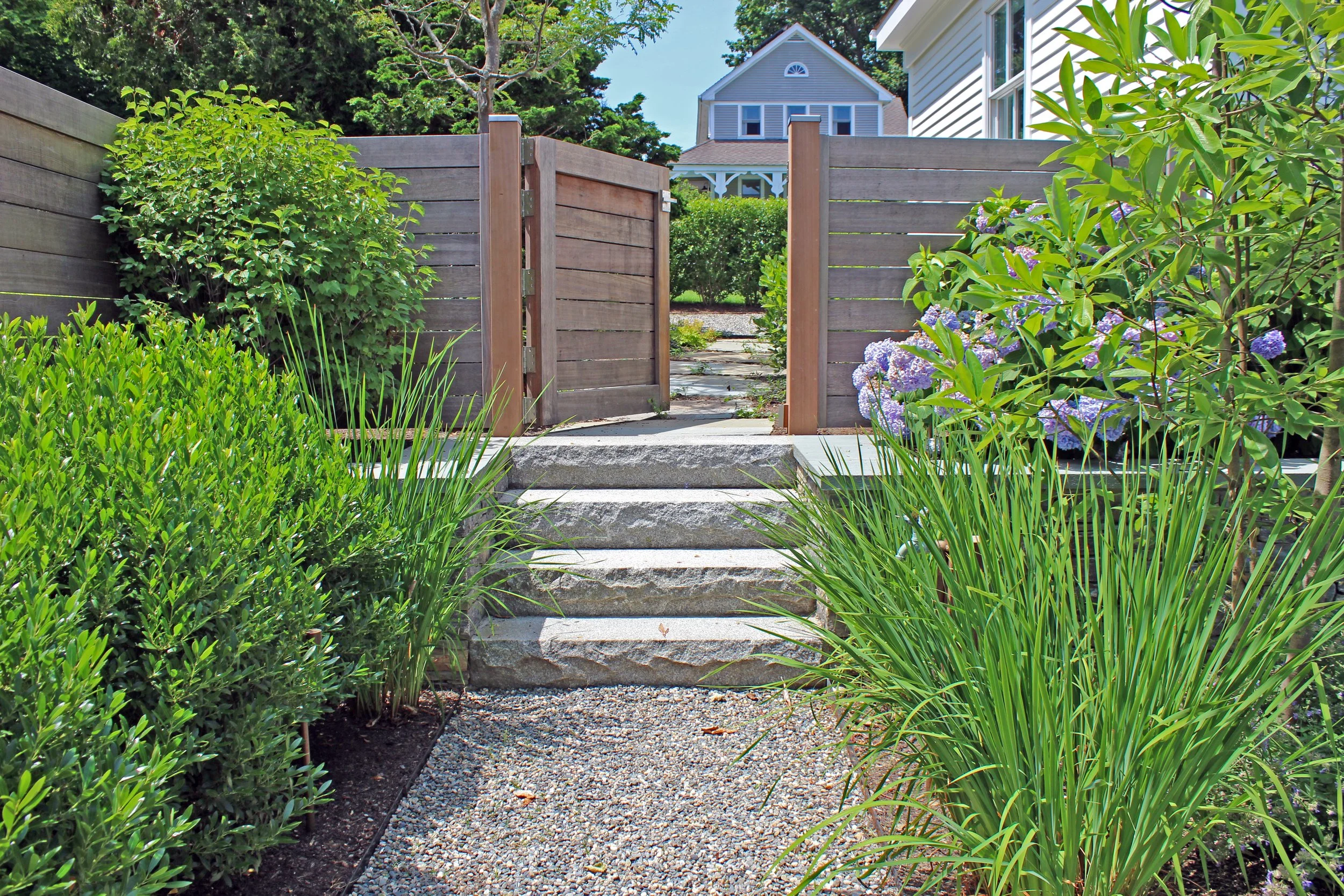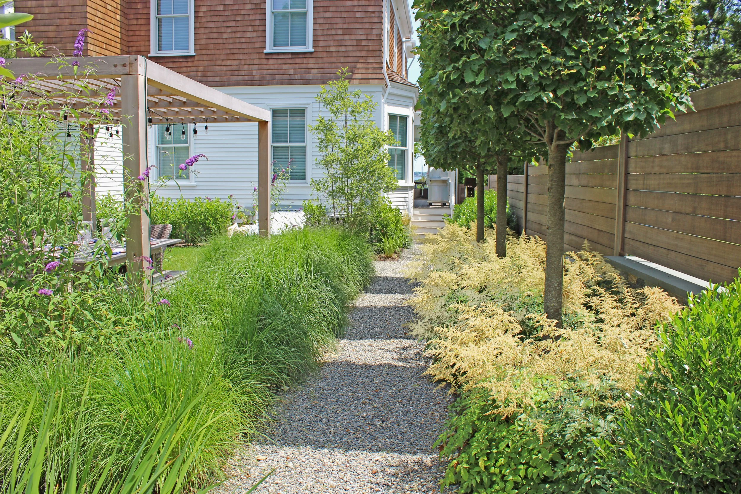 Set on a small lot in a prominent coastal community, Butterfly Cottage is a dream home for a couple looking to retire. With beautiful water views and custom architectural features, the house needed a backyard for entertaining throughout the seasons. Over the years the site had become overgrown with large birch trees and un-maintained perennials preventing a connection between the back garage and the main home. The project scope included an outdoor living space for entertaining, connecting the two structures within the property and creating a sense of privacy in a dense neighborhood.